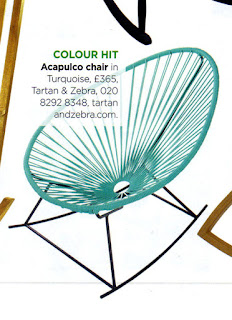 Our Acapulco Rocking Chair in black frame and turquoise cord featured in November's issue of Good Homes Magazine